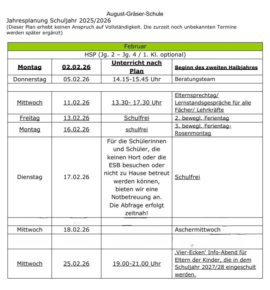 Schulfrei Für die SuS, die keinen Hort oder die ESB besuchen oder nicht zu Hause betreut werden können, bieten wir eine Notbetreuung an. |